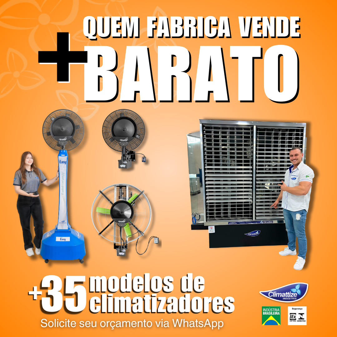 Temos mais de 35 modelos diferentes de climatizadores Aspersivos, Evaporativos e Exaustores, para solucionar os problemas de climatização da sua empresa. As melhores soluções em climatizadores e exaustores para todos os ambientes você encontra aqui.